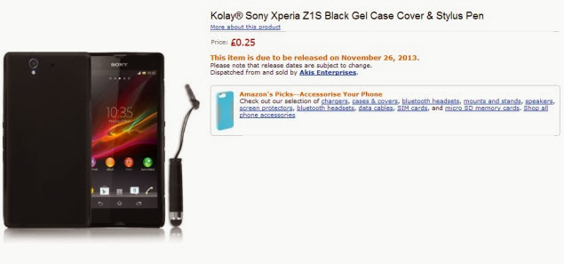 A new Amazon case listing suggests that the Sony Xperia Z1s, the much-talked about international variant of Xperia Z1 f, will be released on November 26.